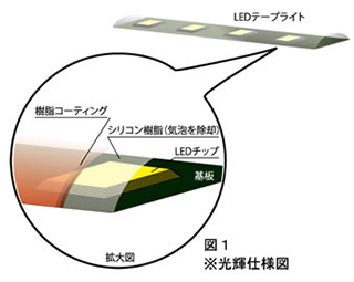 ※LEDテープライトの点灯を行うには、DC12Vの電源アダプターが必要です。